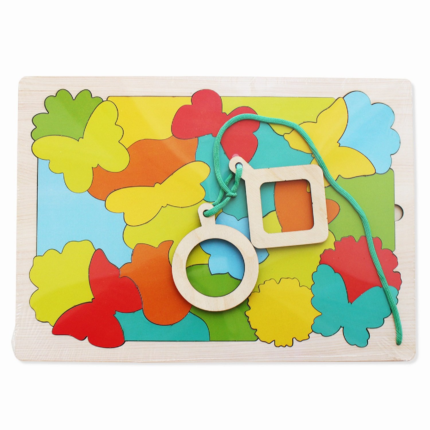 Описание: Деревянная панель с извлекаемыми деталями. Круглая и квадратная лупа, картонные карточки с рисунками.