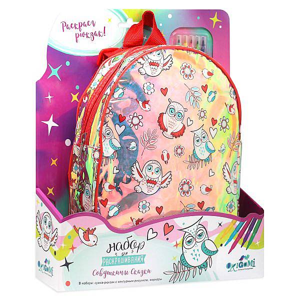 Приглашаем тебя подружиться с веселыми мудрыми совятами! Сделать яркий рюкзачок совсем легко: просто раскрась его фломастерами, которые входят в набор и все! Складывай в него свои любимые вещи и отправляйся на прогулку! Блестящий результат восхитит всех!