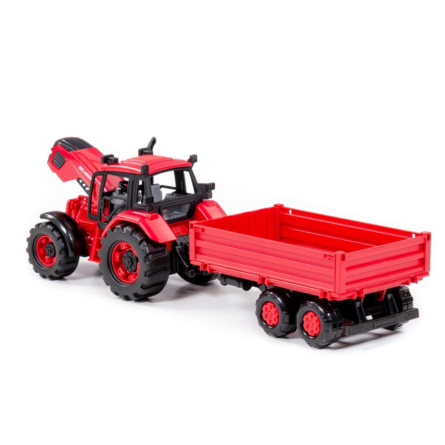 Трактор Belarus – игрушка, изготовленная по лицензии ОАО «Минский тракторный завод». Выпуск трактора приурочен к 75-летнему юбилею завода. Игрушка максимально детализирована и выполнена в узнаваемом цвете сельскохозяйственной техники. Капот трактора может быть зафиксирован в открытом положении для «починки» во время игры. Трактор оснащен инерционным механизмом, который повышает проходимость на разных поверхностях. Наличие прицепа (можно поднимать, борта открываются) позволит разнообразить сценарии детских игр. Взаимодействовать с игрушкой увлекательно как дома, так и на свежем воздухе. Продается маленький аналог большой спецтехники в красочной коробке.